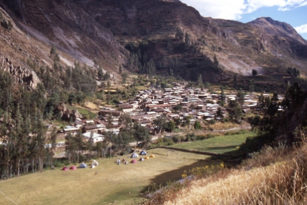 The village of Llamac, starting and ending point of the Huayhuash trek. Our tents can be seen pitched on a soccer field in the foreground of the photo. |