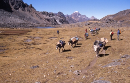 Our donkeys cross the broad and open Tapush Punta (4750m). | |
