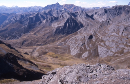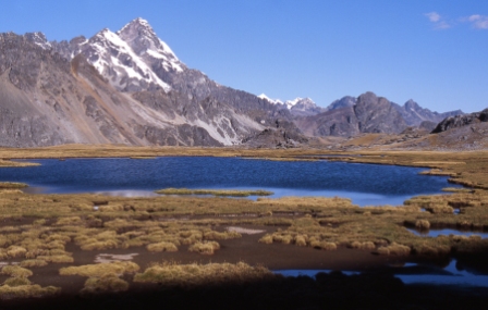 Today was a short trekking day across the broad and open Tapush Punta (4750m) so there was time for an excellent afternoon walk. It was another fine day, and we reached our campsite (altitude 4600m) by lunch time. In the afternoon, Kendy, Lorin and I went for an excellent walk in which we climbed high and traversed an open scree covered range with panoramic views.