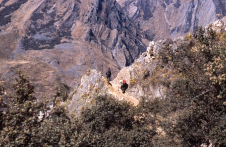 The route wound its way around the valley passing through patches of quenua forest emerging from it occasinally amid dramatic scenery. |