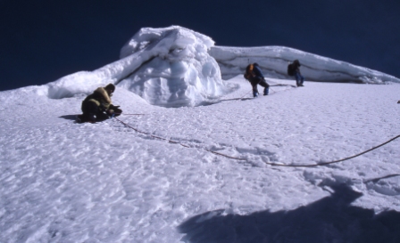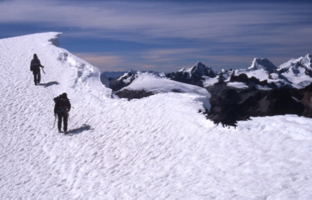 Descending the summit ridge. From left: Lorin, Bill. |