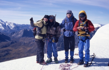 Summit reached! Altitude 5465m (17930 ft). From left: Lorin, Marco, Patricia, Bill. |