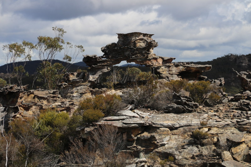 | Sat 19 Sep 2015 | Climbed out of the Wolgan valley and followed a ridge of delicate rock formations to reach Mt Dawson where we had lunch. Continued north along the Red Rocks and camped near Ross' Knob. |