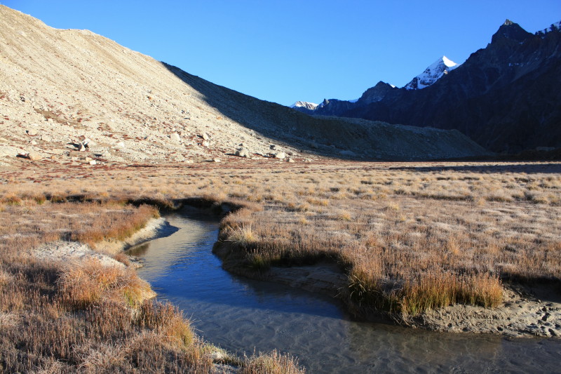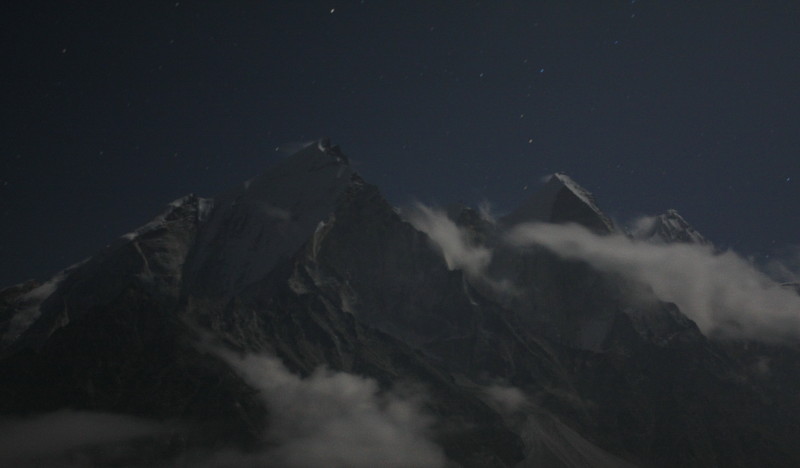 From the road's end at Gangotri it was a day and a half's walk up the stunning Bhagirathi valley to the Shivling base camp at Tapovan. I was very weak during this walk in, owing to a bad stomach upset during the long journey from Delhi. Once we reached the base camp at Tapovan however, I began to recover and regain my strength. This is hardly surprising because the base camp at Tapovan was a place of pristine beauty, the water was crystal clear, the surrounds were wild and clean, and we had the services of Sonam Sherpa and his father Nima, who had come all the way from the highlands of Nepal to cook our base camp food and help us on the mountain. All that was needed to cure a stomach upset by the food of Rishikesh, was a few days of rest in this beautiful place.