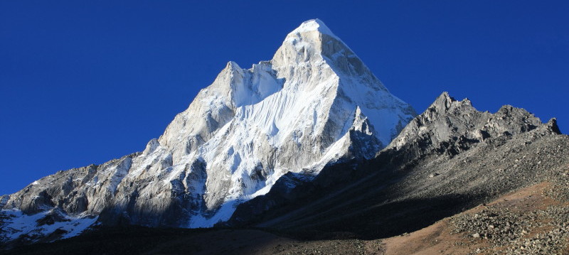 Shivling (6543m) is a stunning mountain in the Uttarakhand province of Northern India. It is a holy mountain for Hindus, as the summit is the home of the god Shiva. The summit of Shivling presides over the Gangotri glacier, the mouth of which is the source of the river Ganges. The trail up the River Bhagirathi to the snout of the Gangotri glacier is a Hindu pilgrim route, as many Hindus come to bathe in the freezing cold water emerging from the mouth of the glacier - water which becomes the holy Ganges River.