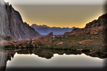 The parks and protected areas are subject to a quota system, meaning that a permit is needed for any overnight trip in the area. The rules and regulations surrounding the quota system are extensive, and I will make no attempt to document these here as they are well documented both online and in guide books. I have put some links at the bottom of this web page to relevant material on this subject. Suffice it to say all overnight visitors to the area are subject to the permit system and the regulations which go with them, which include the compulsory use of bear canisters for the storage of all food during the trek. Another important regulation is that it is not permitted to camp within 100 feet (30m) of lakes and streams during your trek. These and other regulations are aimed at protecting fragile alpine areas from being loved to death by humans, and it is largely owing to these regulations that the High Sierra is such a pristine and unspoilt wilderness area. Compliance with these regulations is not hard, and once you have a permit specifying your entry and exit trailhead and dates, you are pretty much free to roam the wilderness to your heart's content for the period covered by your permit. Camping is allowed almost anywhere (except within 100m of water sources) and you are free to walk or climb whereever takes your fancy. Thus a walk in the Californian High Sierra is truly an unforgettable wilderness experience.