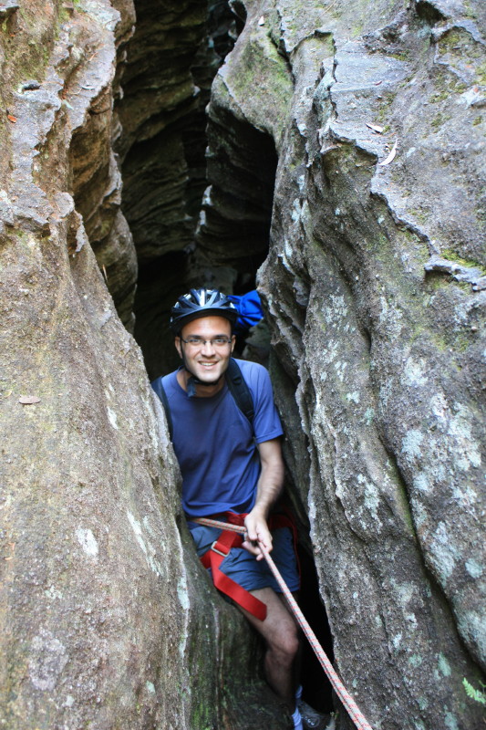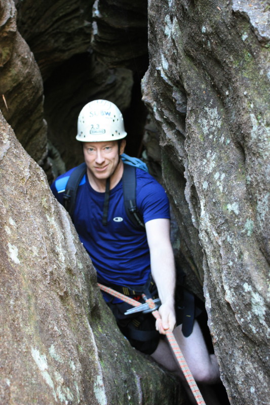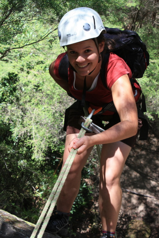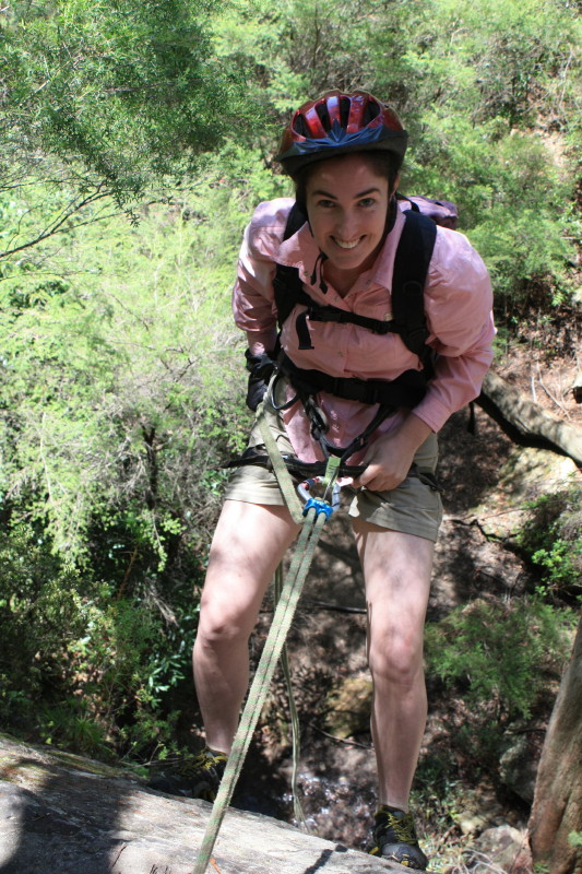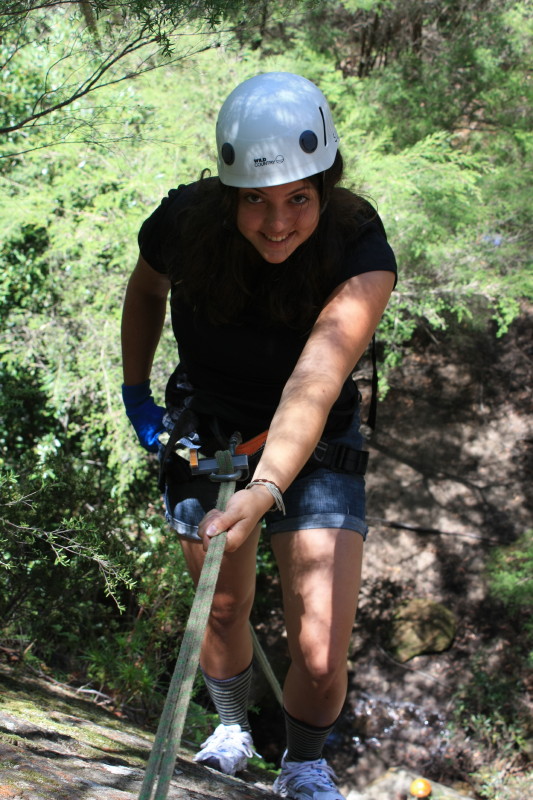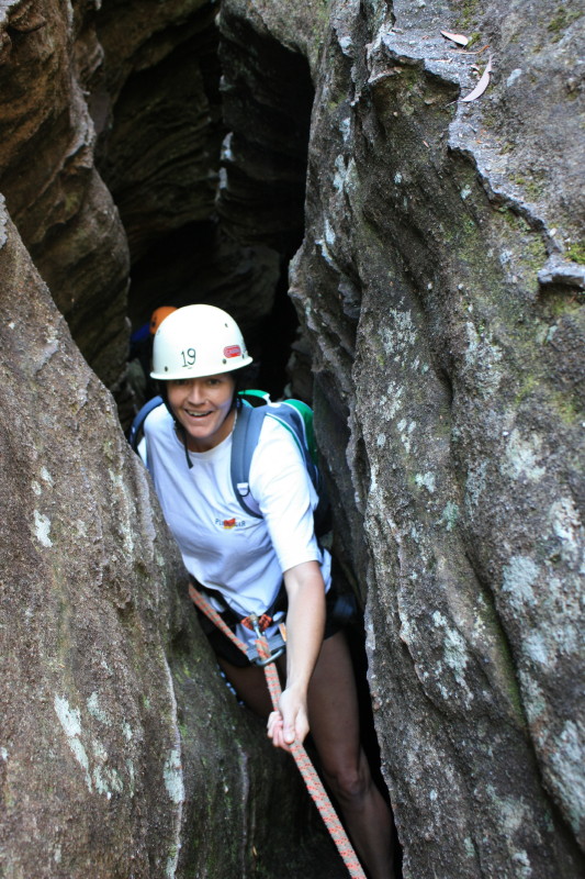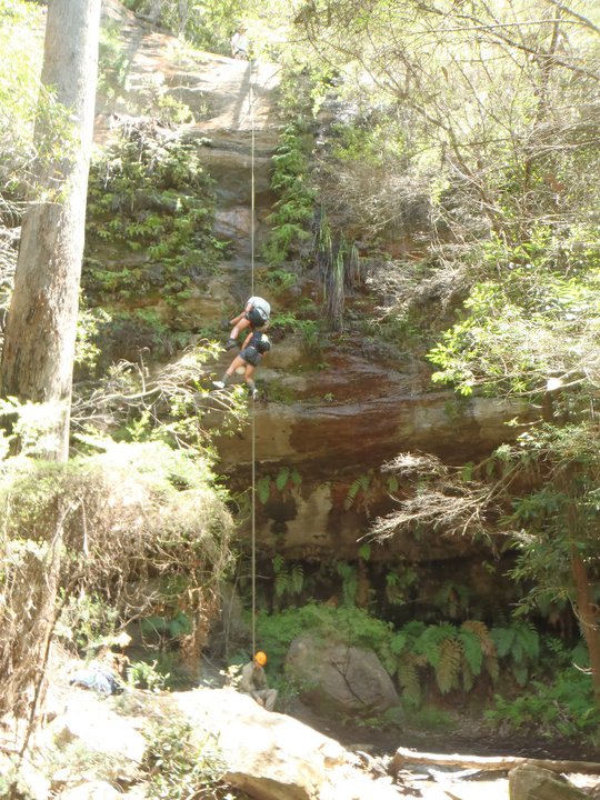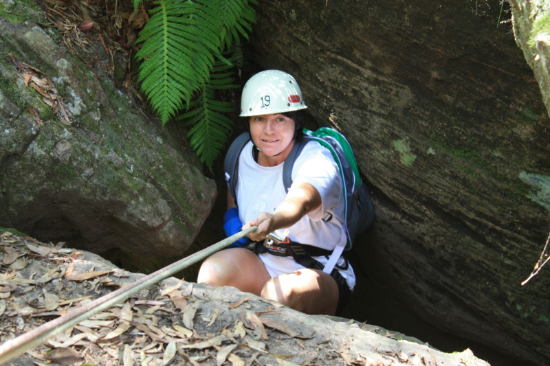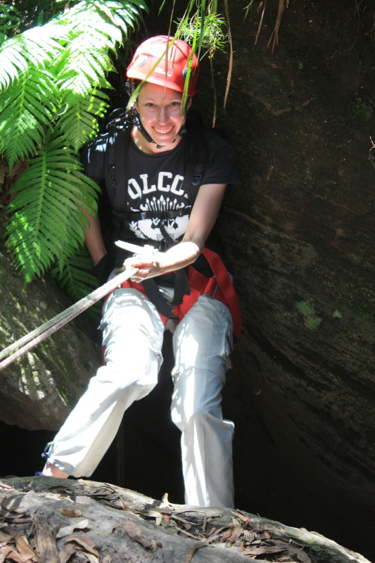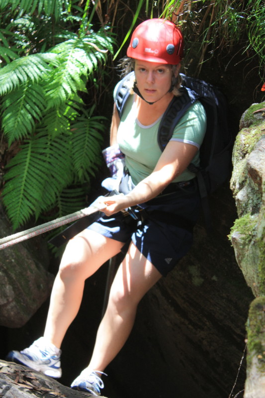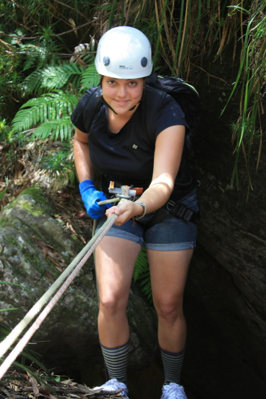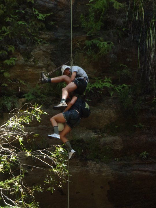 Half way down and Sandra's hair got caught in the abseil and I had to prussik down to her....