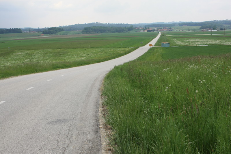 On 1 May 2011 I kept going through Ptuj and then had a fascinating ride on a tiny road very close to the Croatian border just south of Rogaška Slatina. This tiny road was only wide enough for one car (or a bike) and there was no traffic. Unfortunately I don't have any photos of this section. |