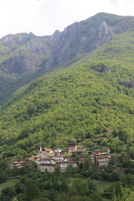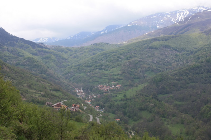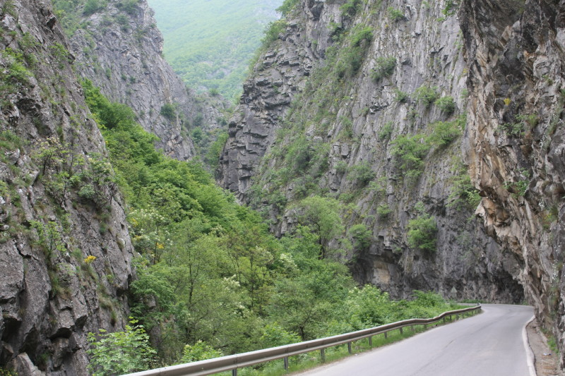 On 18 May I rode south from Lake Mavrovo. The weather was a bit better and it was fast downhill riding. Whilst I remained in the national park, the scenery was pleasant, a deep densely forested gorge.