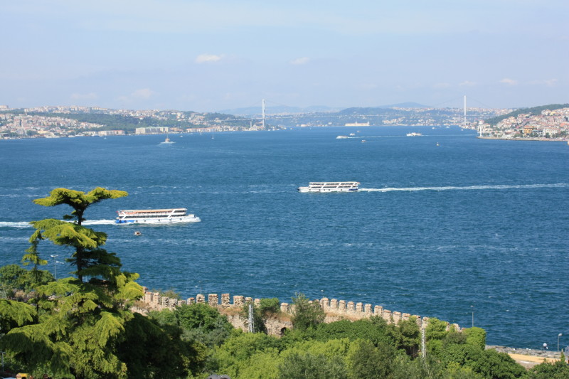 View of the Bosphorous from the Topkapi Palace grounds, Istanbul. |