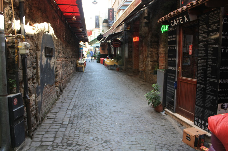 A little street of restaurants and cafes in Sultanahmet, Istanbul. |