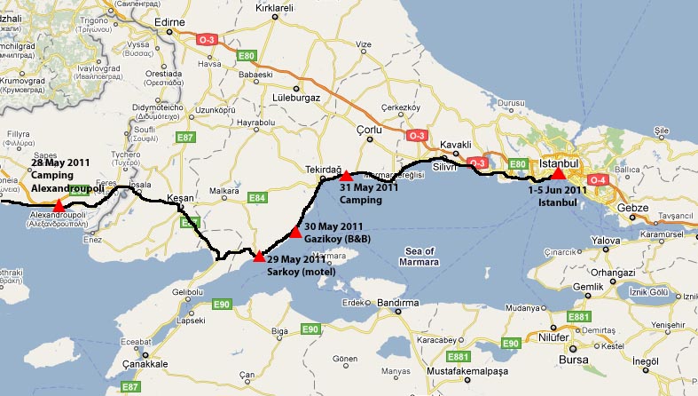 By now I realised I had a few spare days to reach Istanbul in so I slowed my pace, except on 29 May when I rode nearly 150km from Alexandroupoli to Sarkӧy.