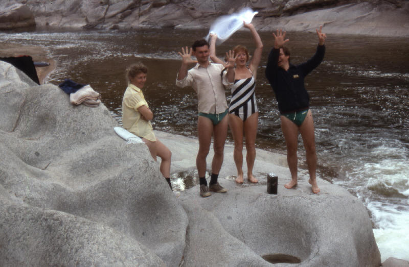 Yes, that's the main pool in the background, now diminished to small pond with lots of silt. In this photo, from left to right: Marca, Roger, Maeve and Ted |